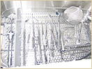 | 器具についた血液や唾液などのがんこな汚れを殺菌剤配合の洗剤で徹底的に洗い落とします。そして、薬剤の中に10分間浸漬して化学的な滅菌を行います。 |